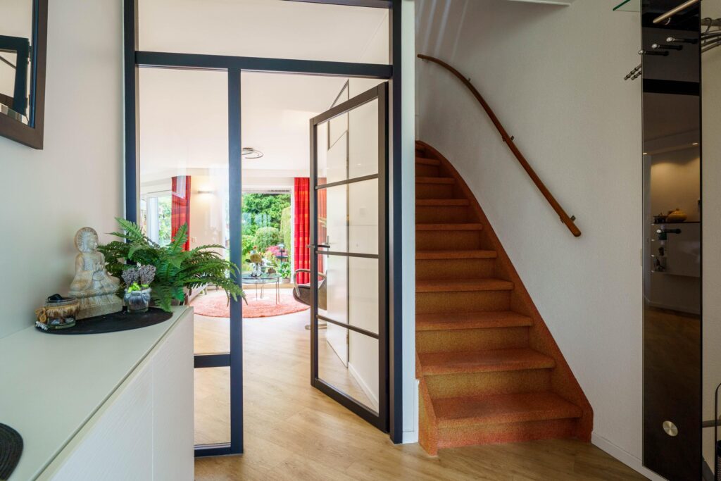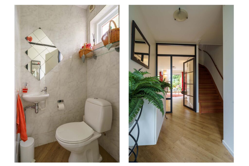In de entreehal treft u de toegang tot de meterkast, het toilet en de tuingerichte woonkamer.