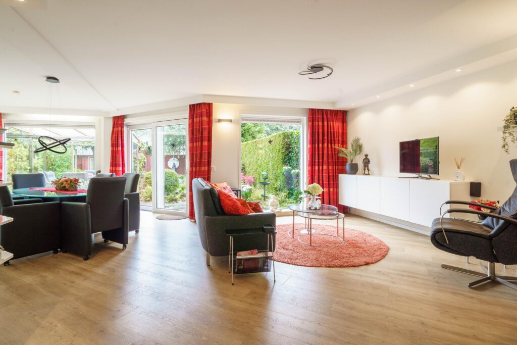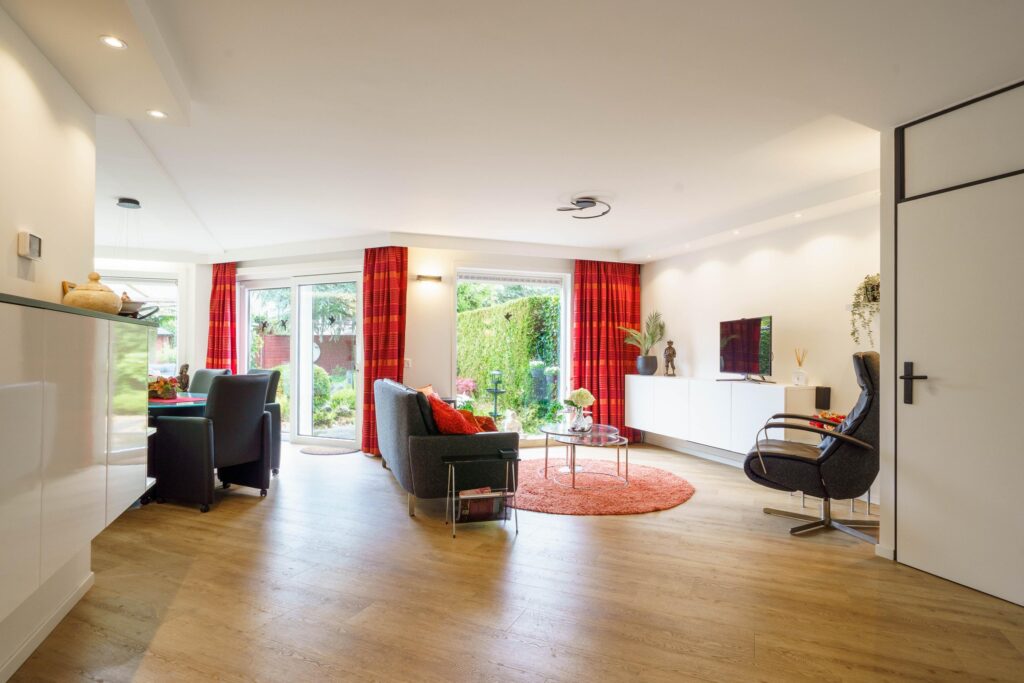 – Tuingerichte woonkamer met schuifpui en veel lichtinval;