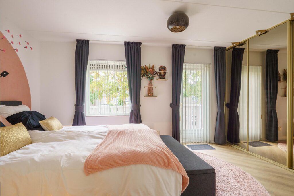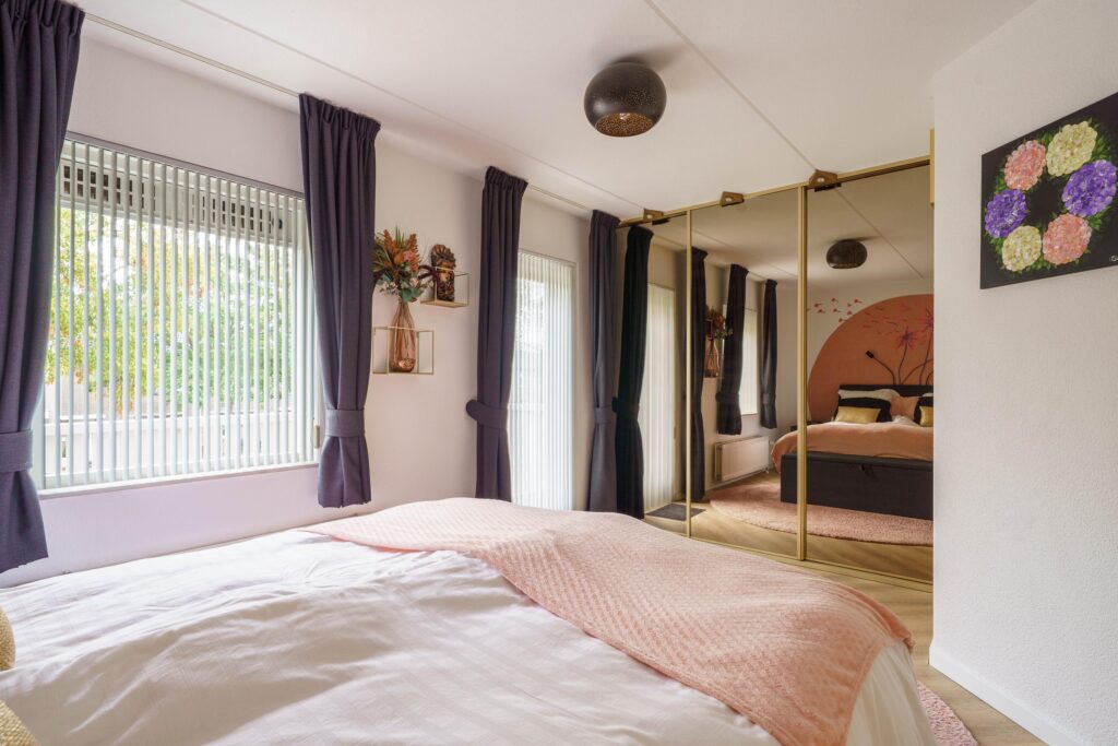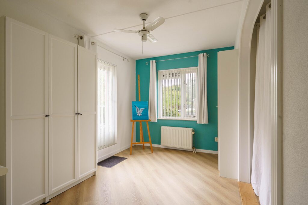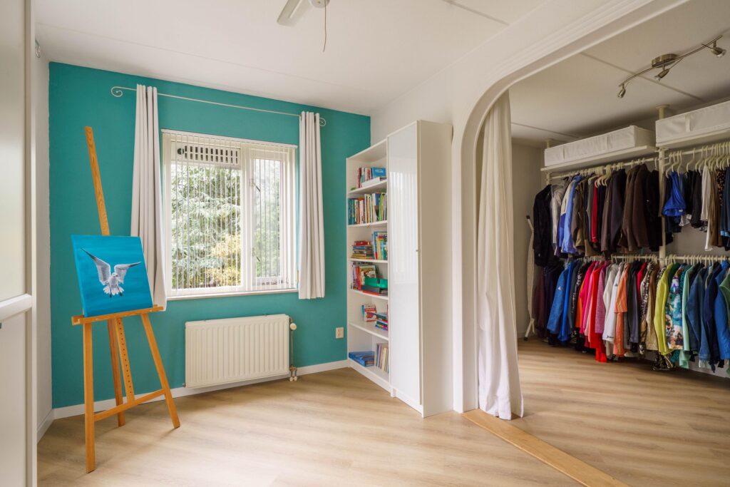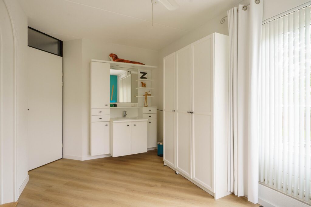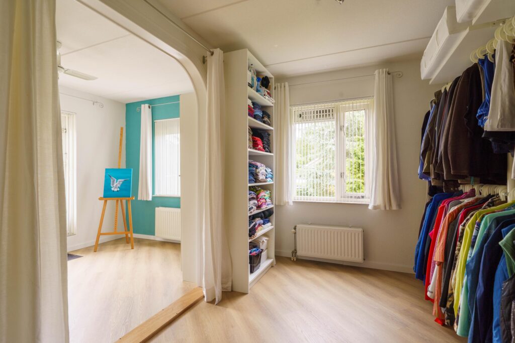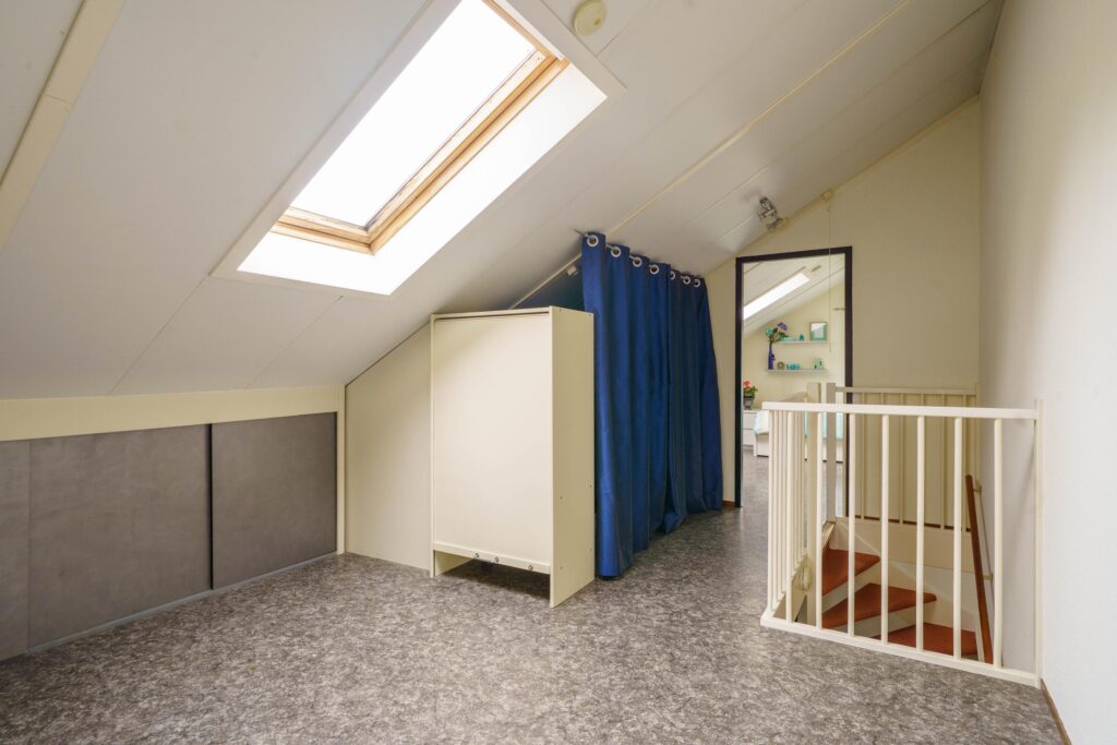 U treft hier een ruime, lichte overloop/hobbyruimte met opstelplaats voor de wasmachine/ droger én toegang tot de ruime slaapkamer aan de achterzijde. Het is eenvoudig om aan de voorzijde ook nog een 5e slaapkamer te realiseren. Veel bergruimte treft u achter de knieschotten met schuifdeuren.