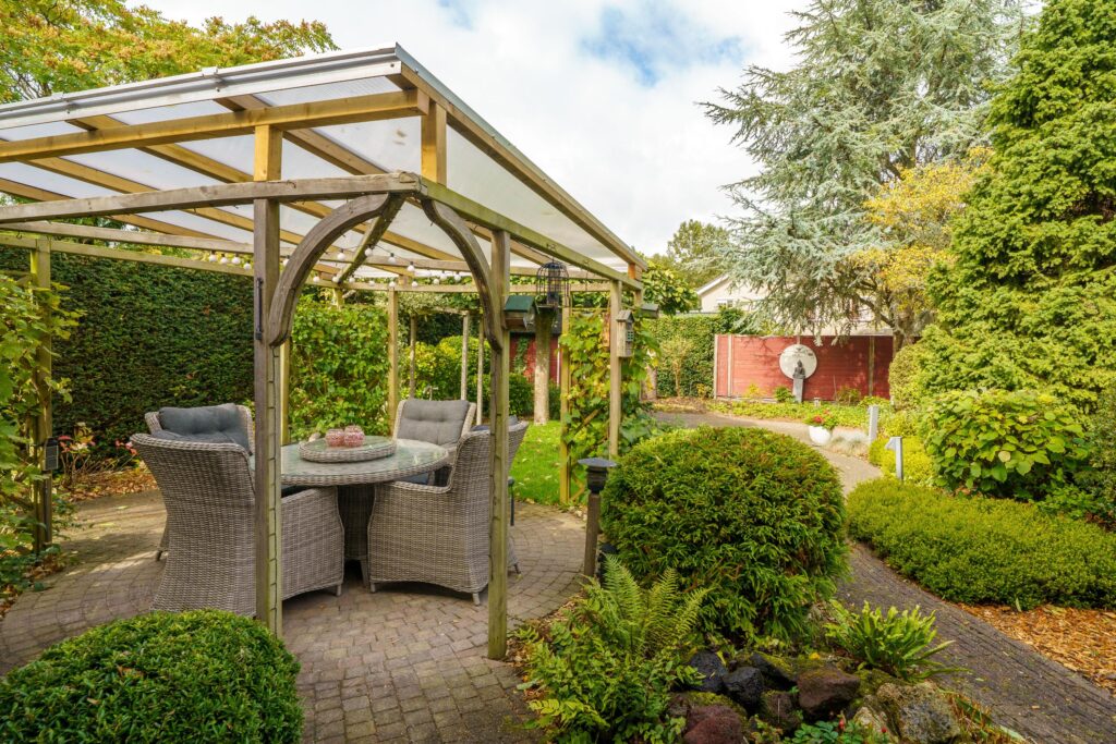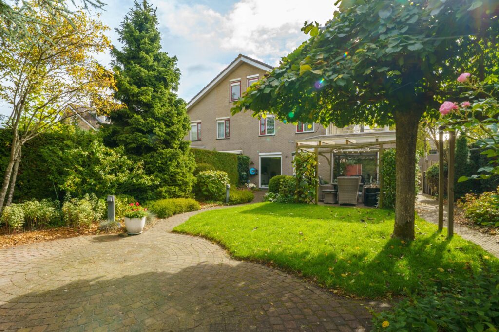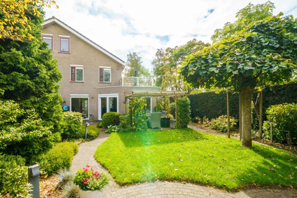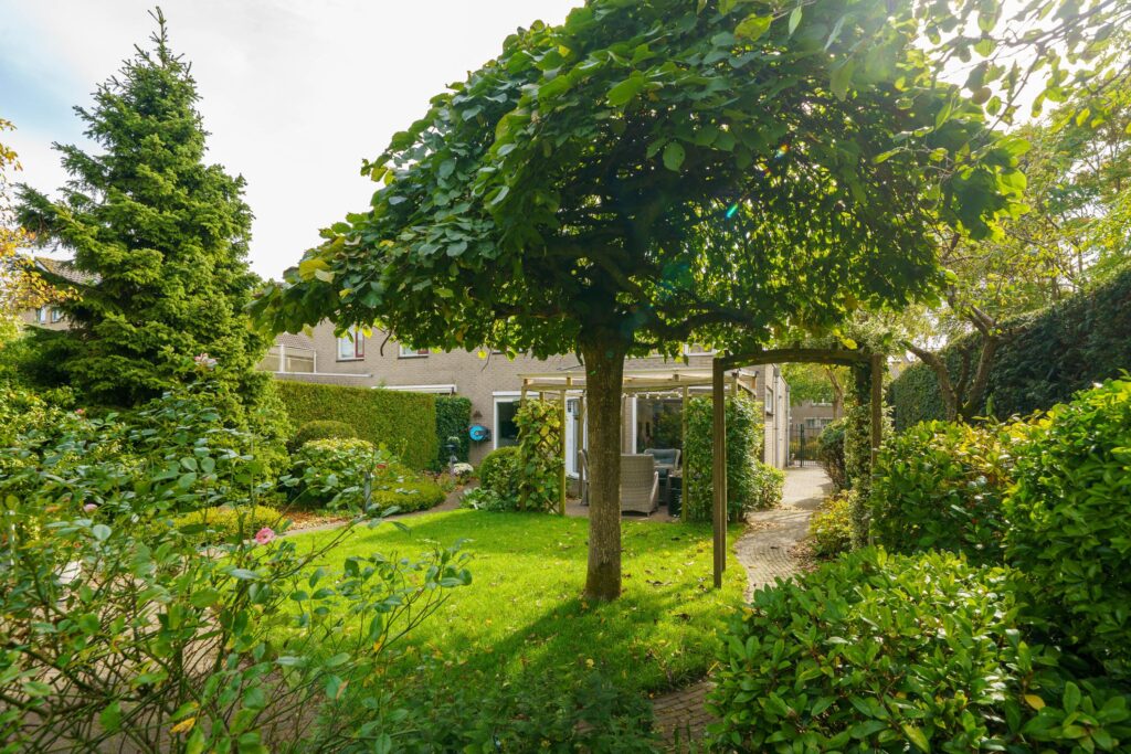 De enorme ruime achtertuin is onder architectuur aangelegd en ligt op het noordwesten. Door de diepte van ca. 18 mtr. (breedte ca. 13 mtr.) en de diverse terrassen kunt u op zomerse dagen de gehele dag kiezen voor de zon- of schaduwzijde van de tuin. De tuin is verder voorzien van veel groen, een automatisch sproeisysteem en verlichting. Fijn is ook de extra berging voor al uw tuinspullen. De achtertuin is vanuit de woning en buitenom langs de woning te bereiken. Aan de voor- en achterzijde van de woning treft u een buitenkraan.