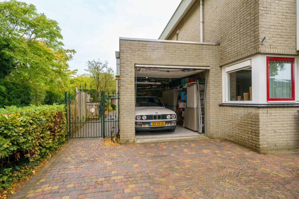Vanaf de voorzijde van de woning of via de zijdeur bereikt u de ruime, aangebouwde garage van 18 m2. Op eenvoudige wijze valt hier eventueel ook een praktijkruimte of werkkamer te realiseren welke van binnenuit bereikbaar is.
