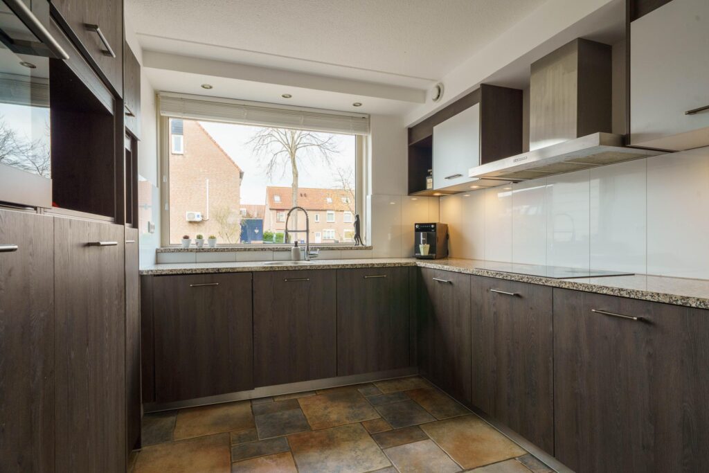 • Keuken aan de voorzijde met groot raam en inbouwkeuken in U-opstelling met veel bergruimte