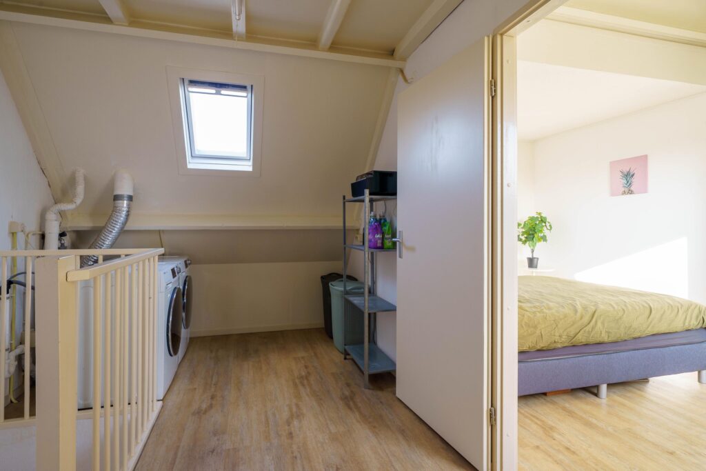Ruime overloop met aansluitingen voor de wasmachine en een bergvliering. Vanuit de overloop heeft u tevens toegang tot de ruime vierde slaapkamer.
