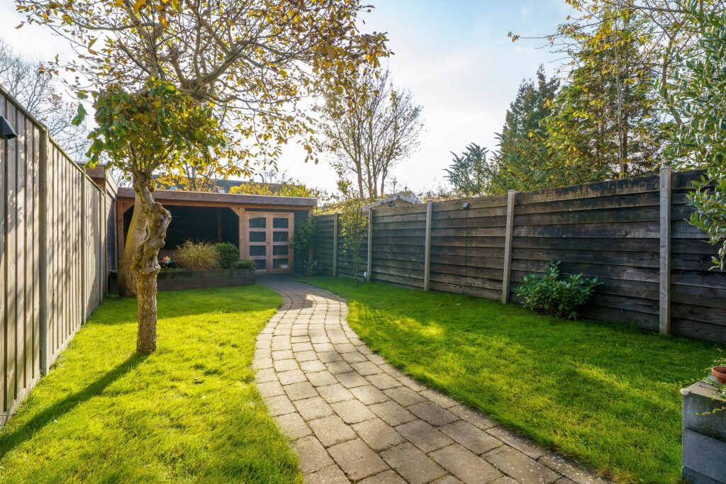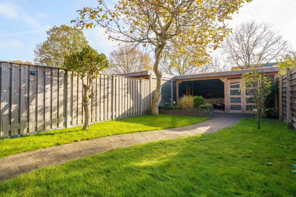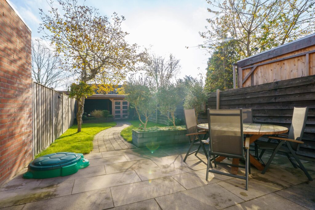 • Achtertuin van bijna 20 meter diep met overkapping, berging en achterom