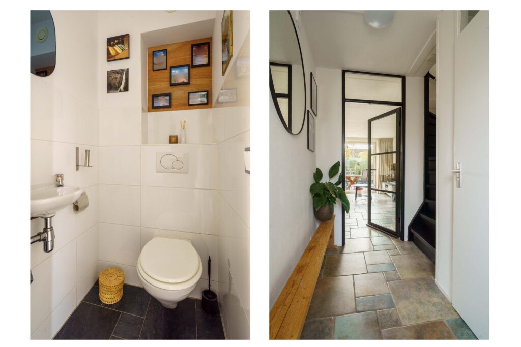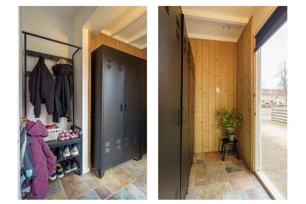 • Aangebouwde berging aan de voorzijde bij de hal getrokken tot ruime garderobe