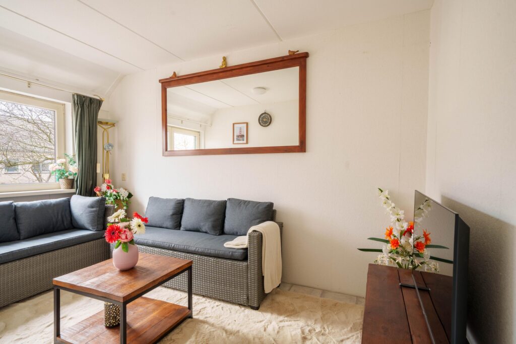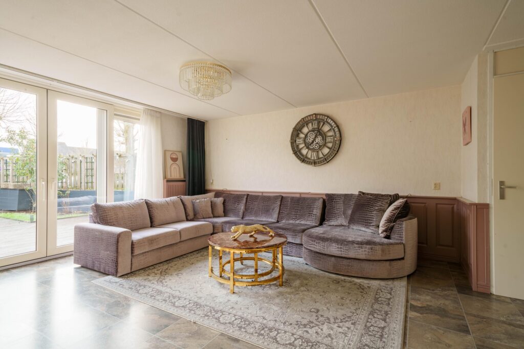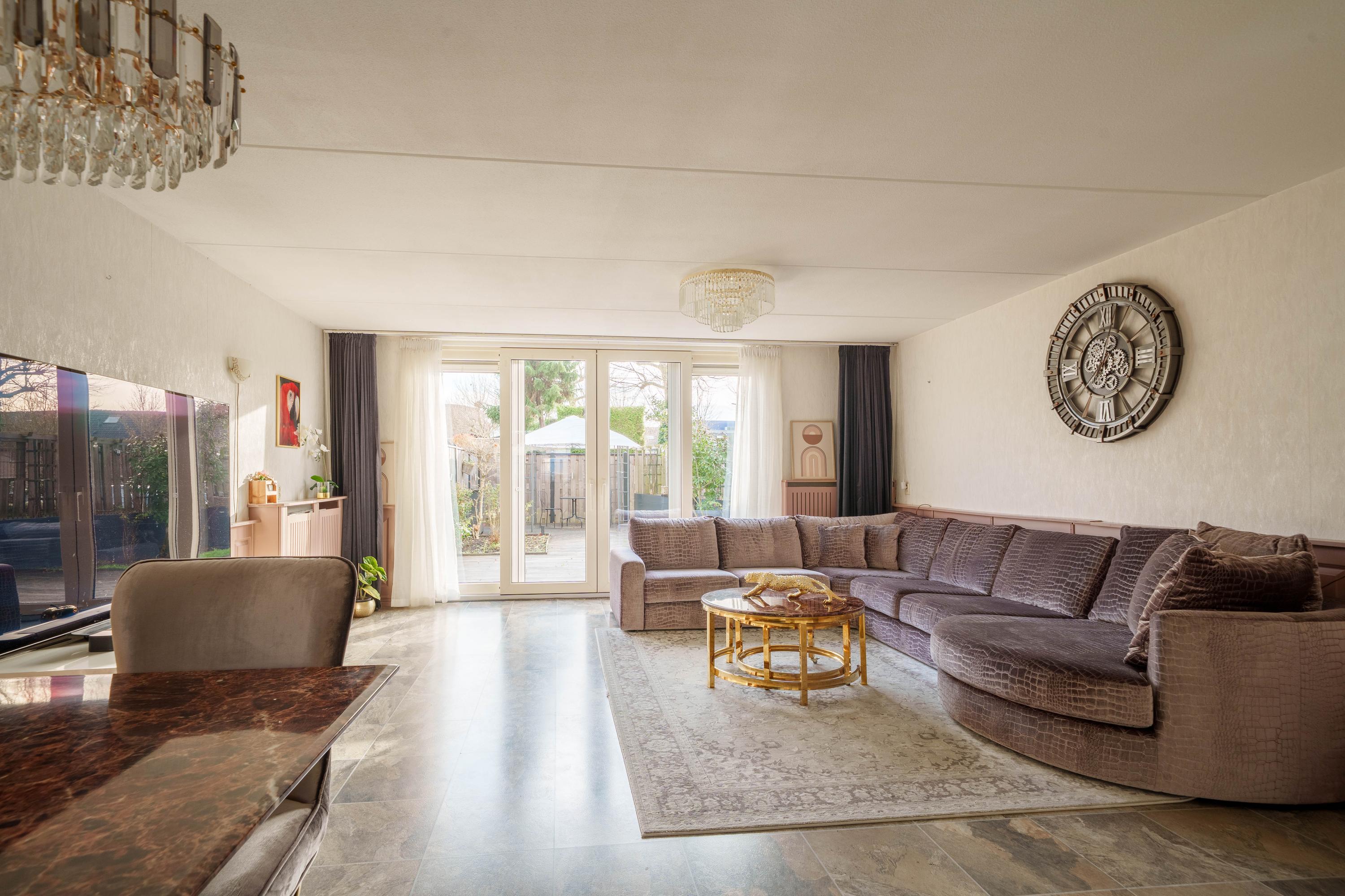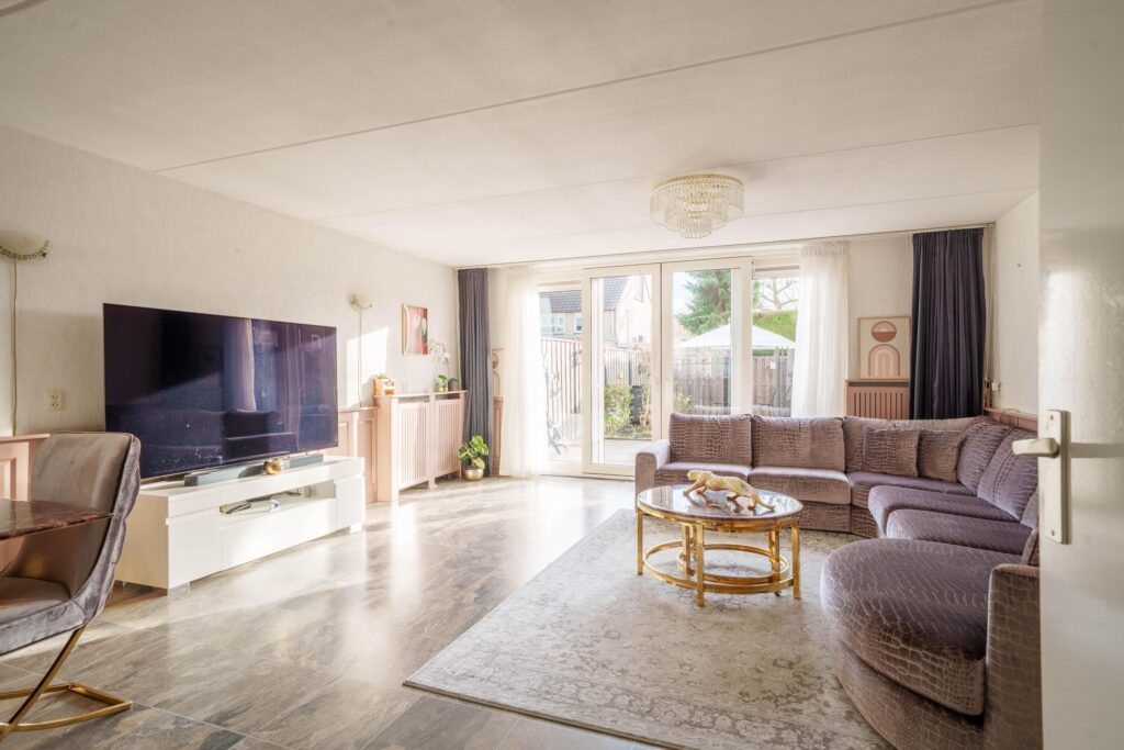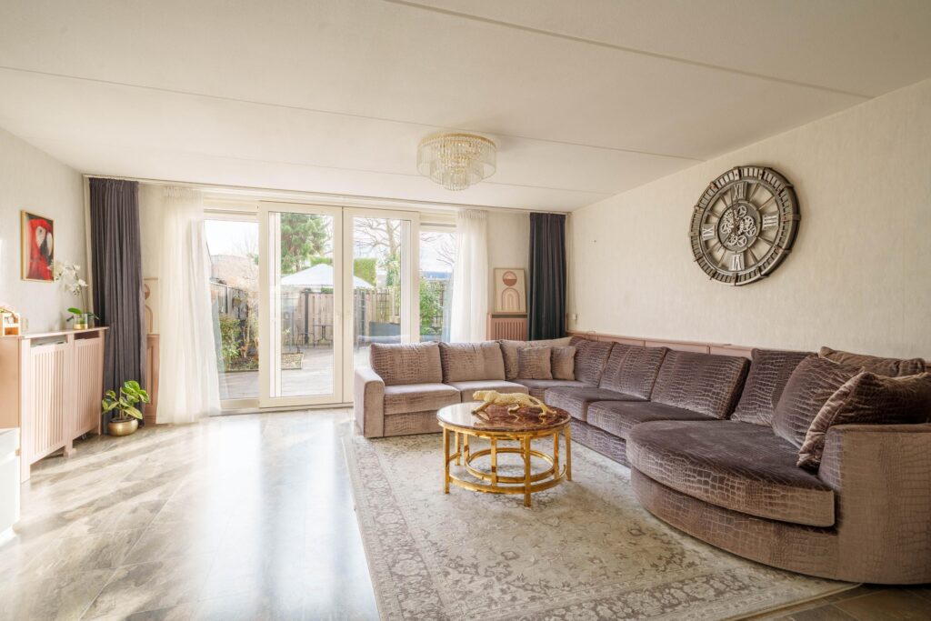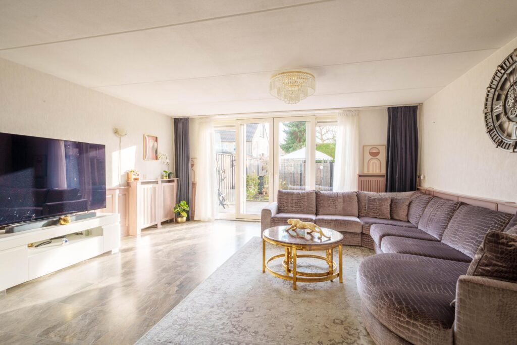 · Woonkamer met uitzicht op de tuin en brede schuifdeuren
