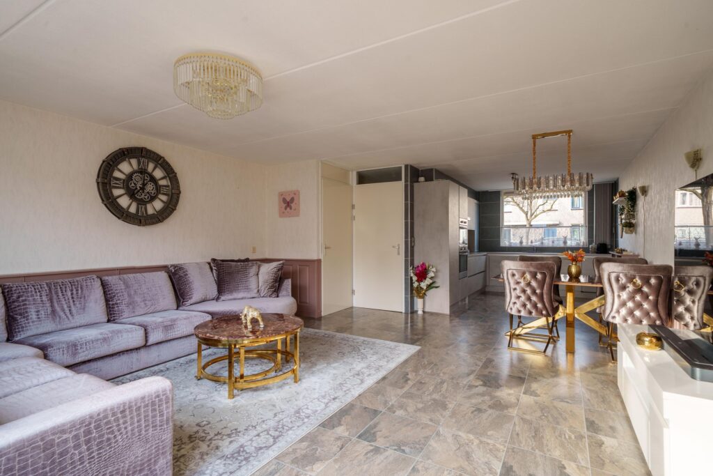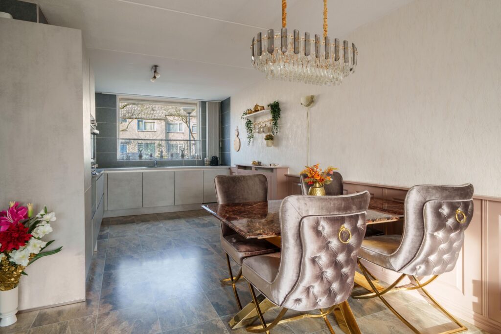 De gehele begane grond is afgewerkt met laminaat, wat zorgt voor een warme en samenhangende uitstraling.