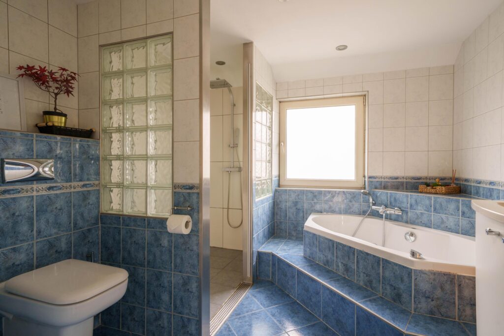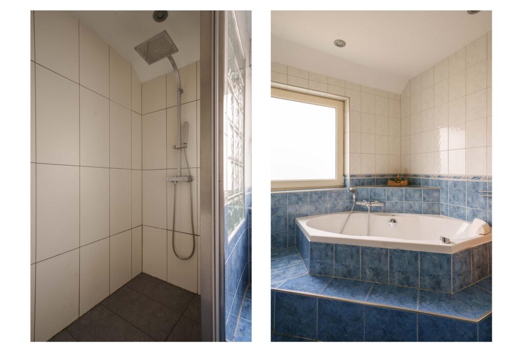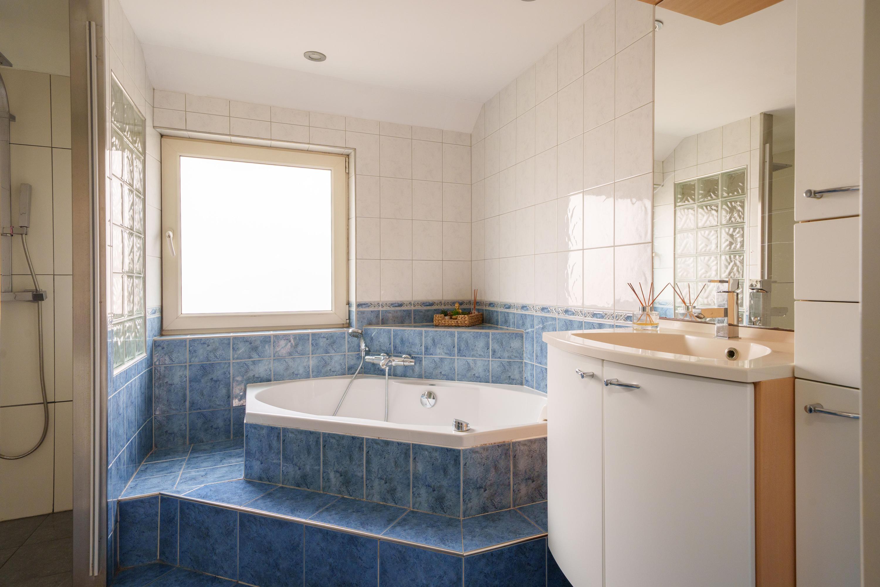 · Badkamer met ligbad met jacuzzi/whirlpool, inloopdouche, tweede toilet en wastafel