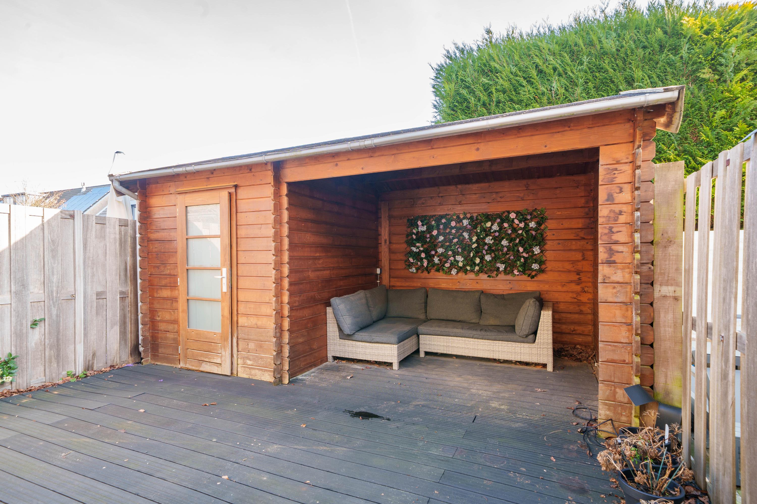 • Zonnige achtertuin op het zuidoosten met berging en sfeervolle overkapping