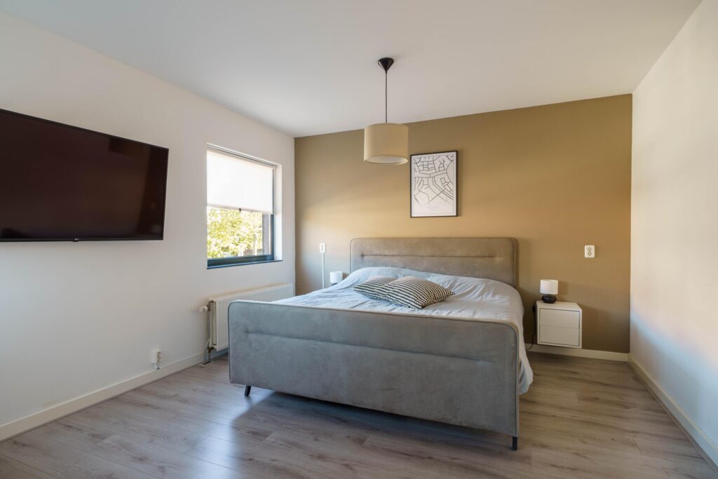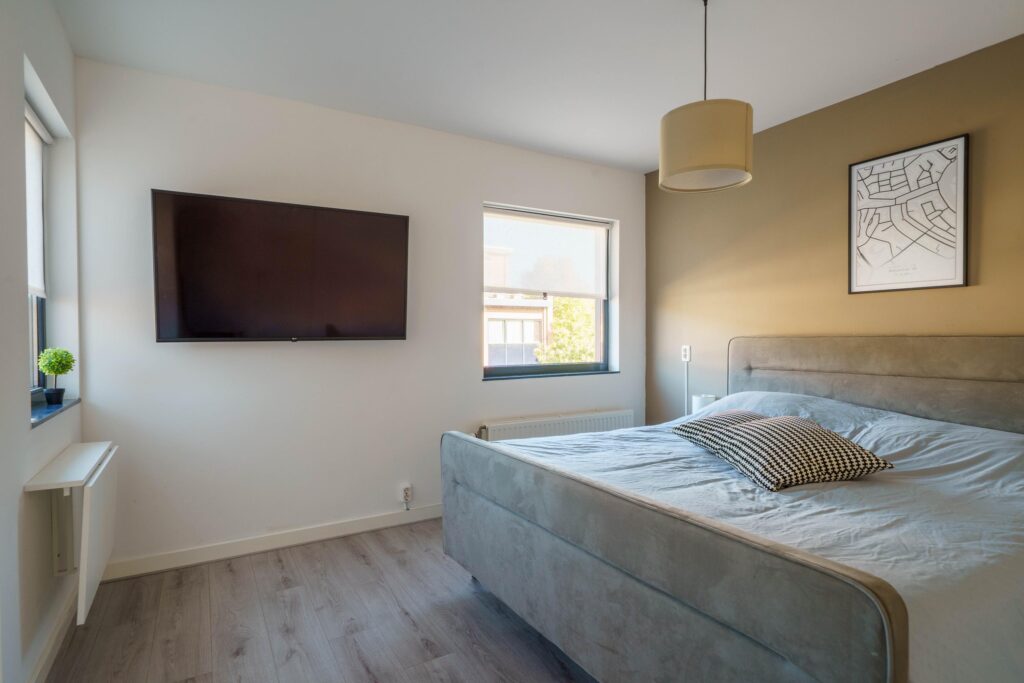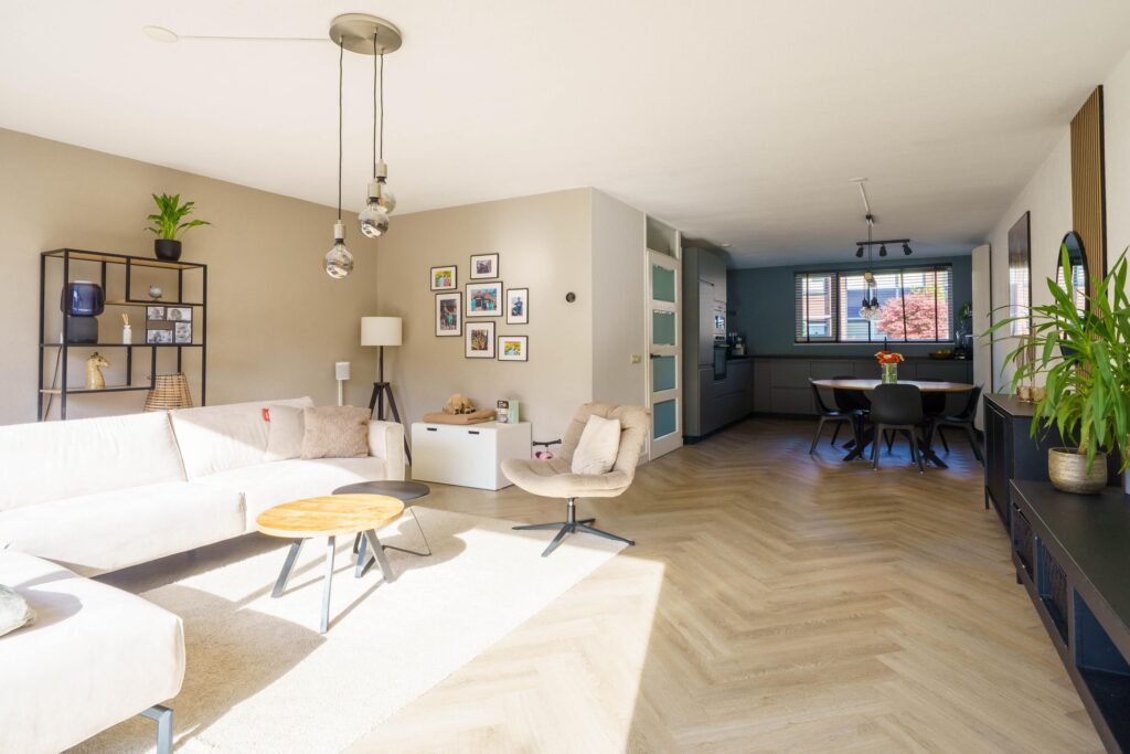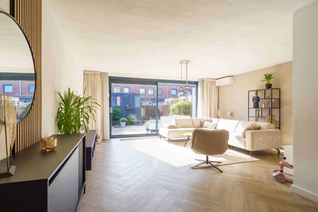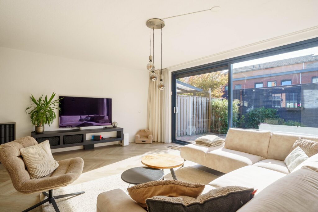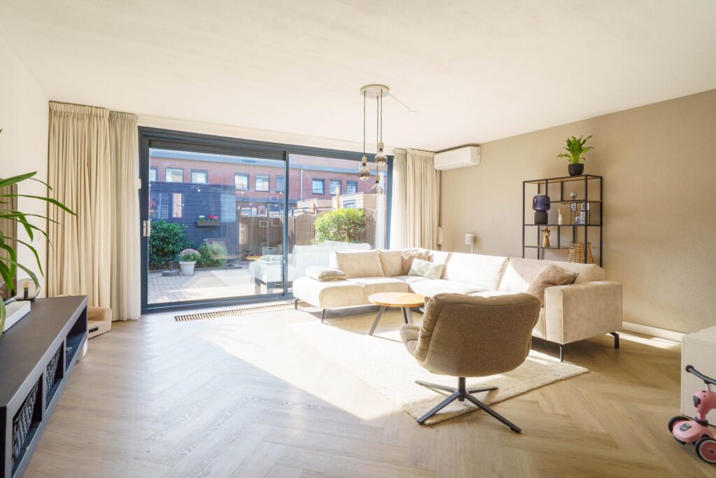 – Uitgebouwde woonkamer v.v. airconditioning en brede schuifpui naar de tuin;