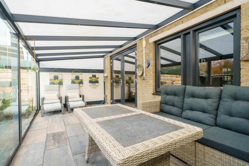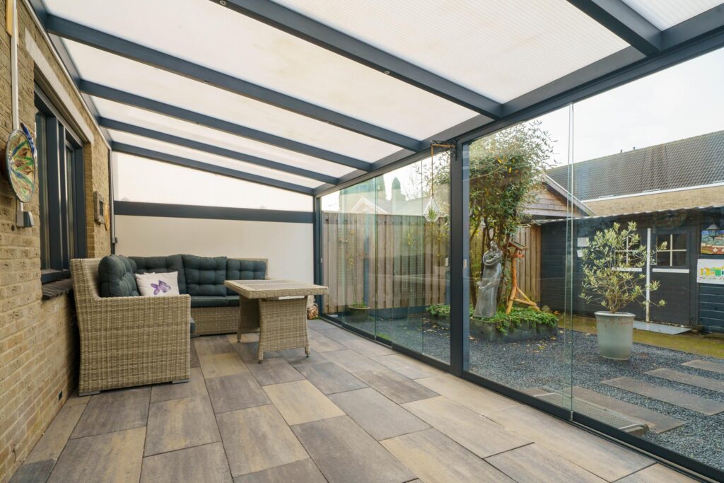 • Afsluitbare veranda van 21 m² met glazen schuifdeuren en geïntegreerde verlichting