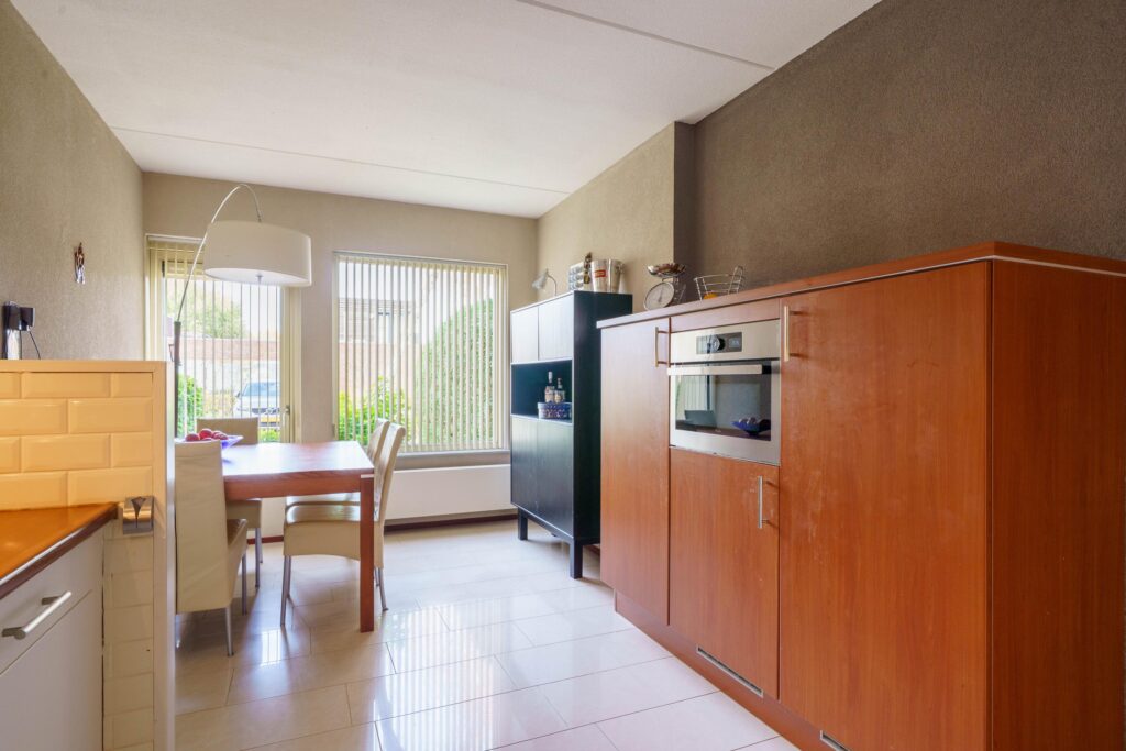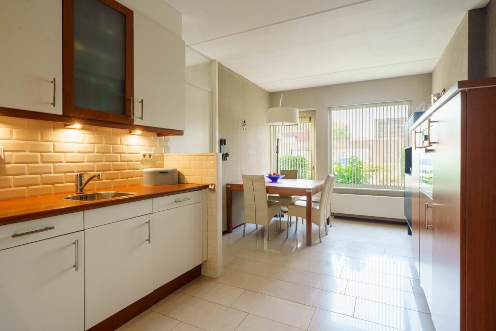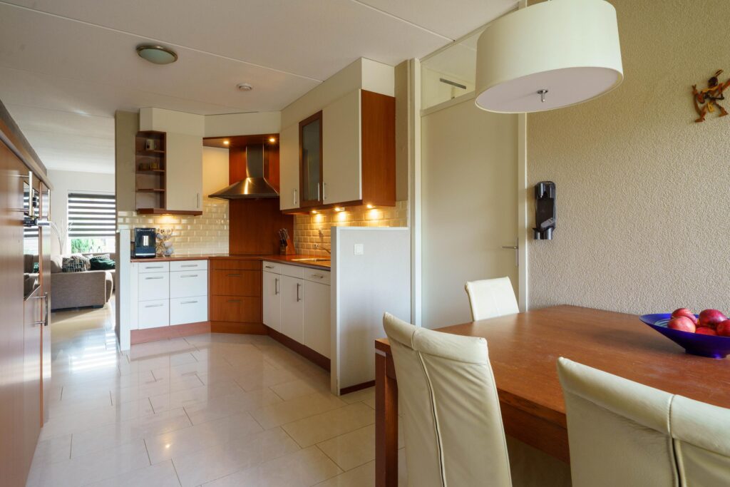 De woning is tijdens de bouw aan de voorzijde uitgebouwd, waardoor een prachtige ruime eetkeuken is ontstaan — de ideale plek voor gezellige diners of een ontspannen ontbijt in de ochtend.