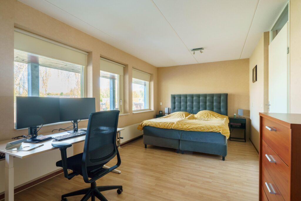 De ouderkamer strekt zich uit over de volledige breedte van de woning (ca. 6,25 m) en is voorzien van een vaste kast.