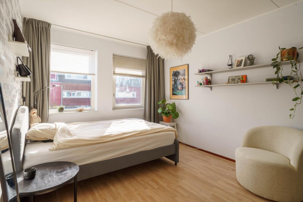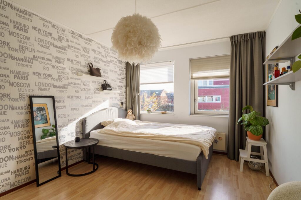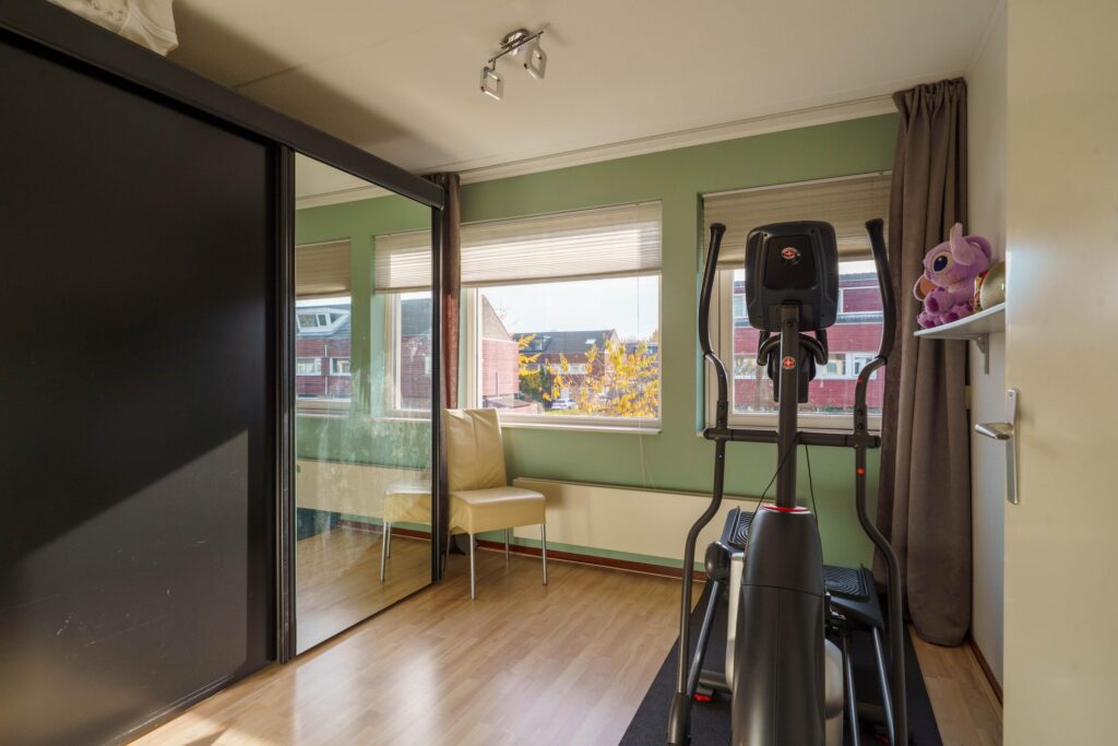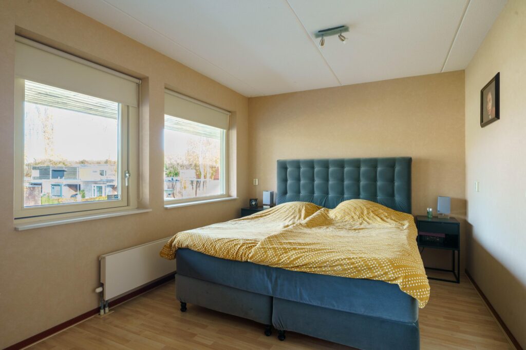 Eén van de slaapkamers aan de achterzijde beschikt over een kleine inloopkast, ideaal voor extra opbergruimte.