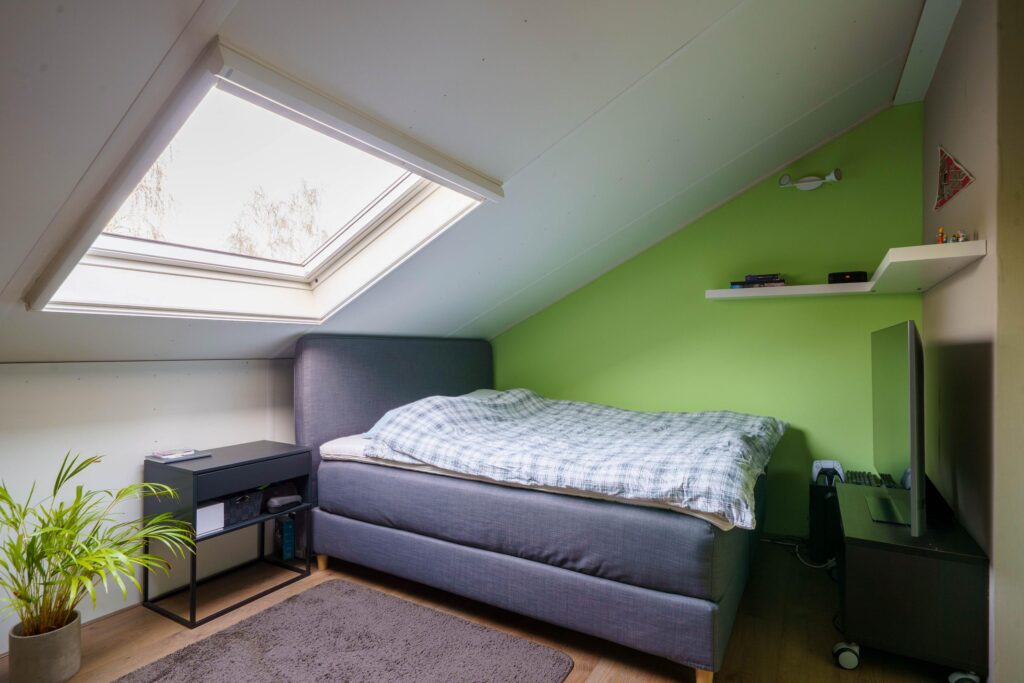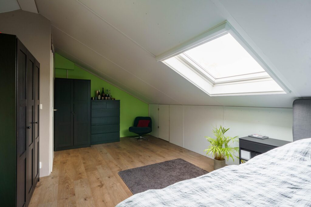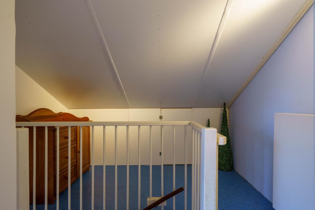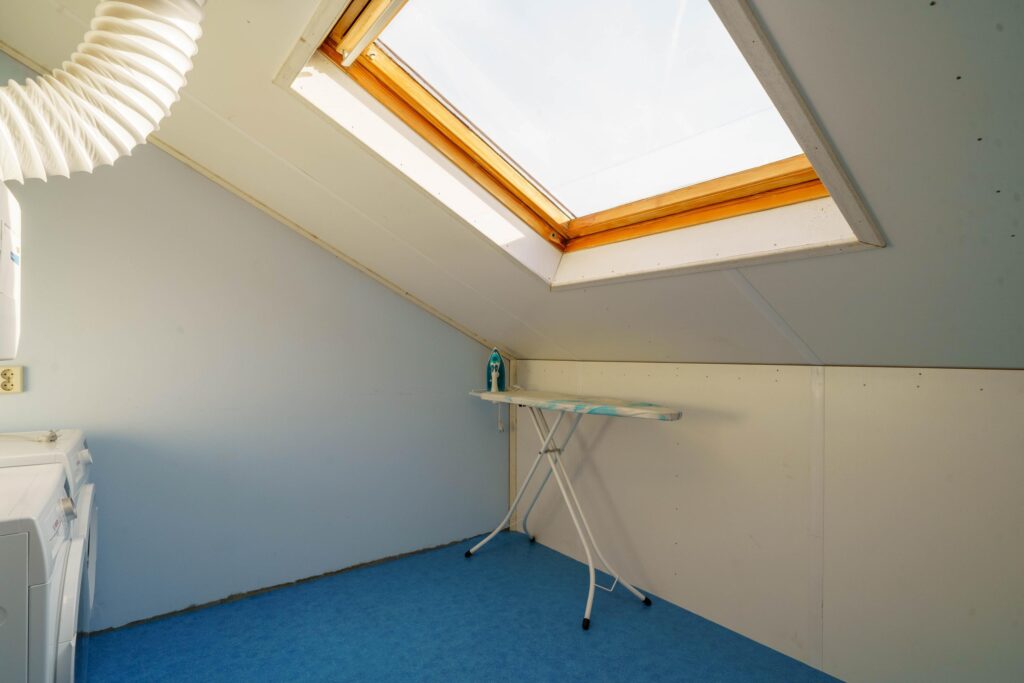 Deze volledig afgewerkte verdieping biedt een overloop, een ruime slaapkamer en een praktische wasruimte met aansluitingen voor de wasmachine en droger, evenals extra bergruimte. Twee grote Velux-dakramen zorgen voor veel daglicht, waardoor deze verdieping licht, ruim en prettig in gebruik is.