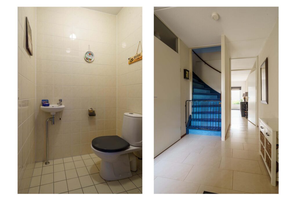 Ruime, lichte hal met toilet en toegang tot de woonkamer en de uitgebouwde woon-/eetkeuken.