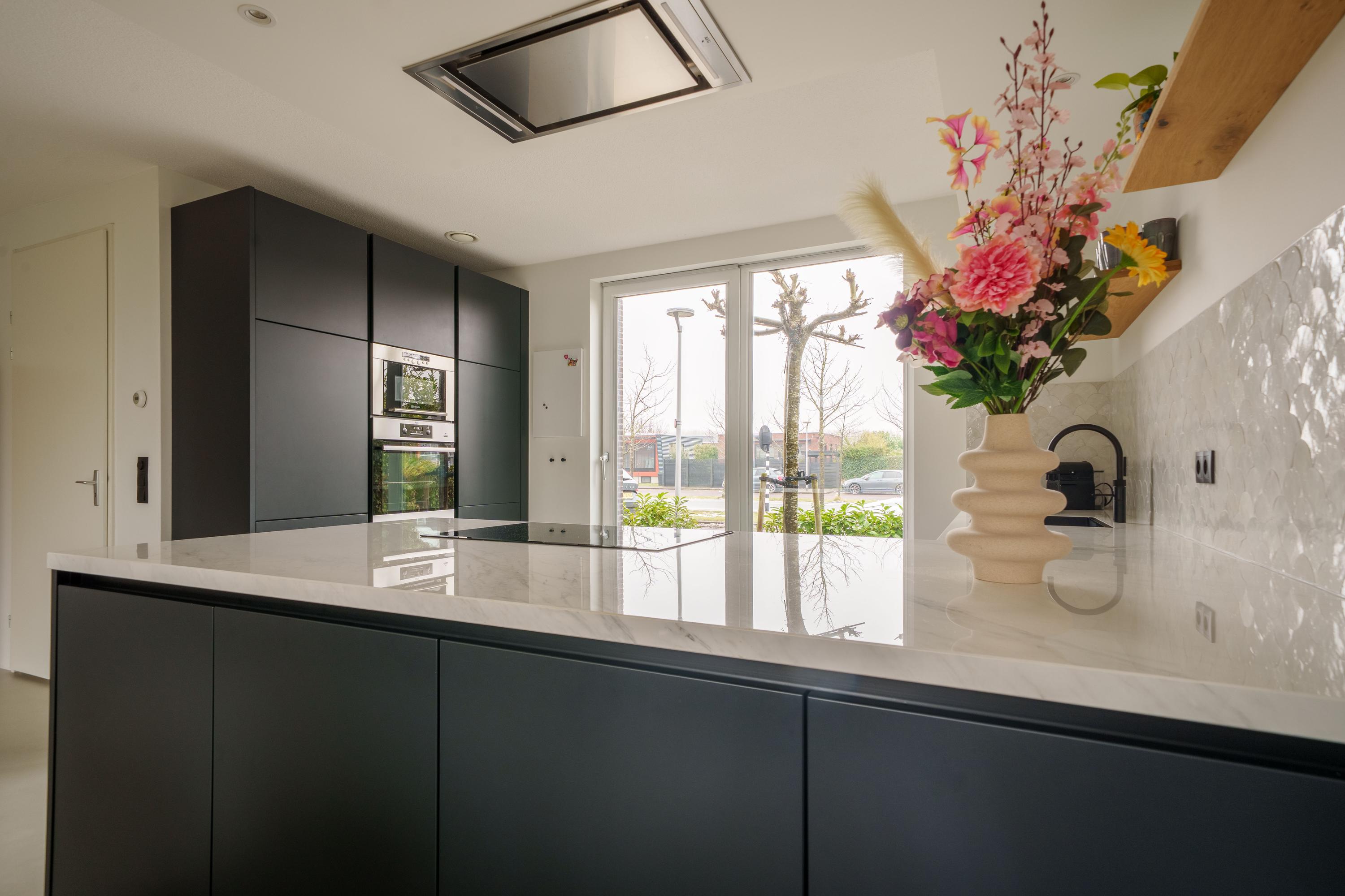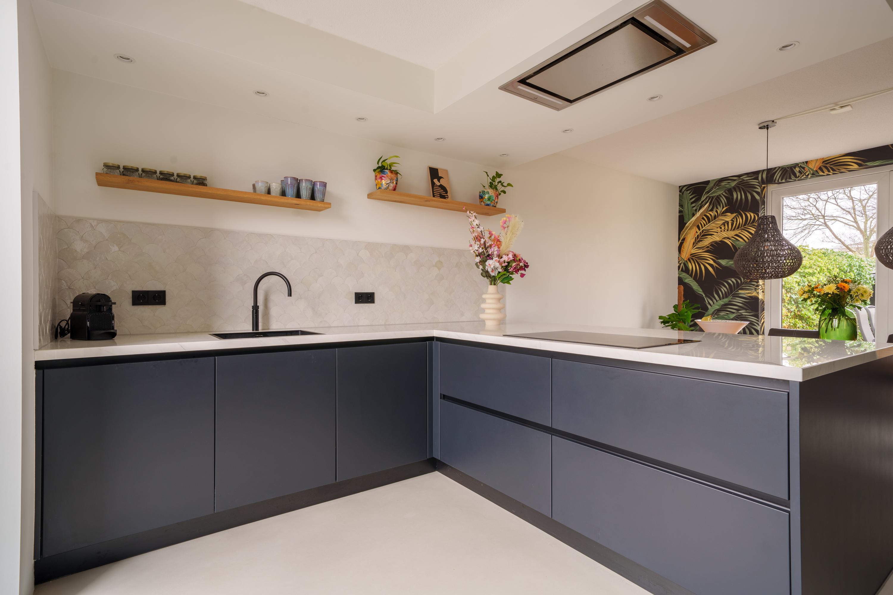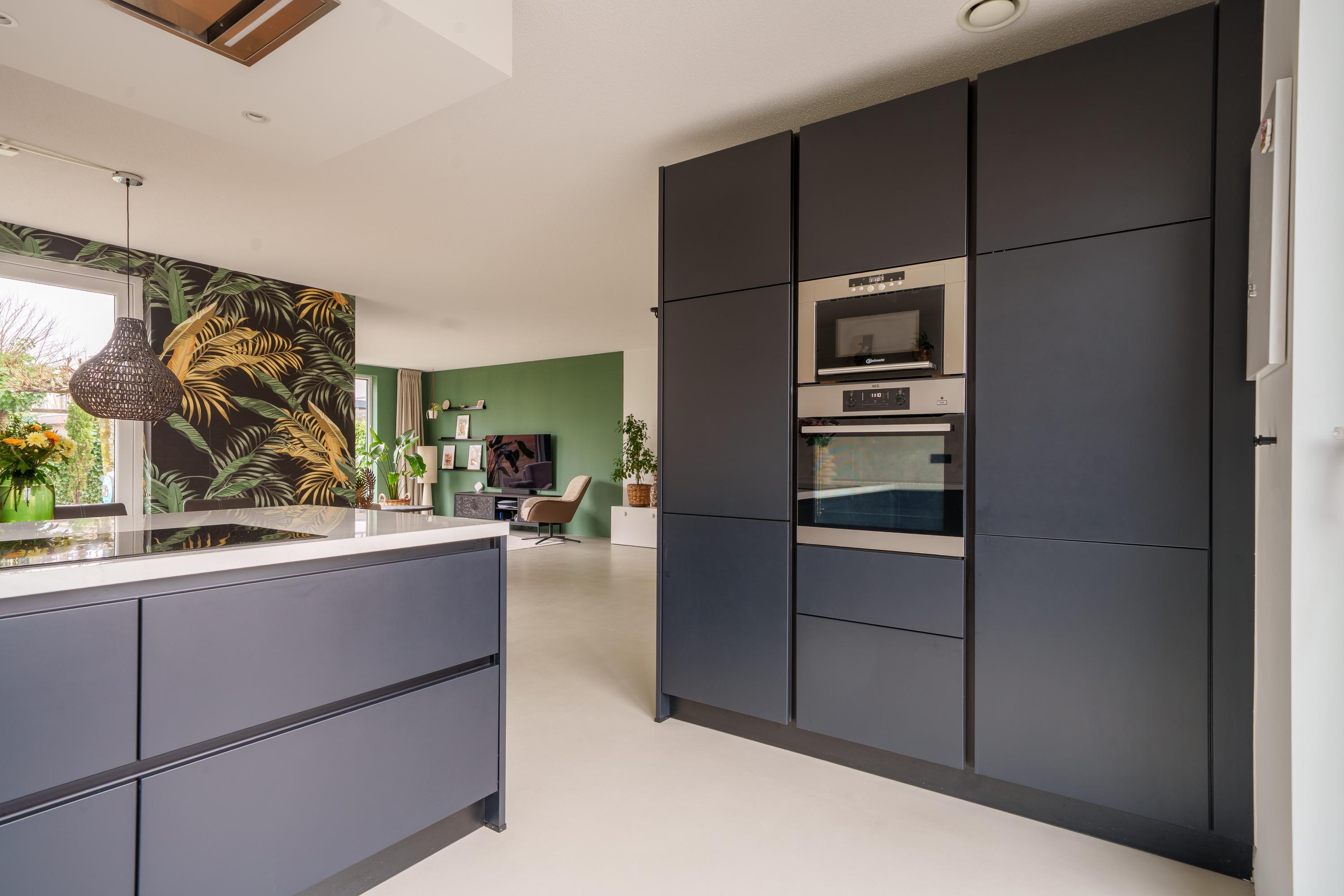 • Luxe, moderne keuken (2023) in L-opstelling en een extra apparatenwand