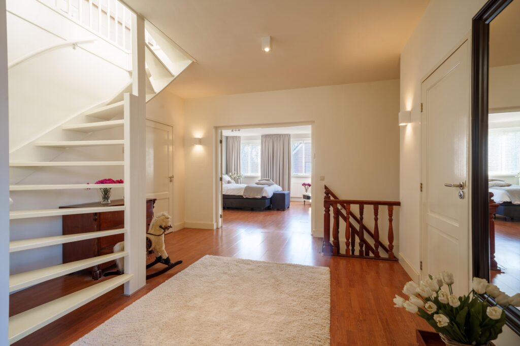 De trap in de entreehal leidt naar de eerste verdieping.