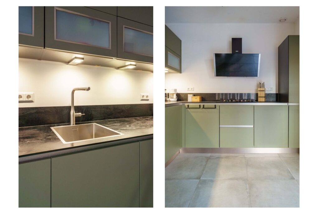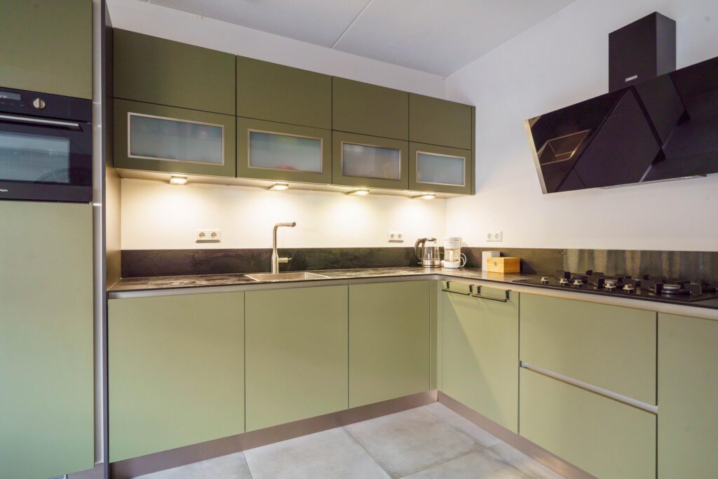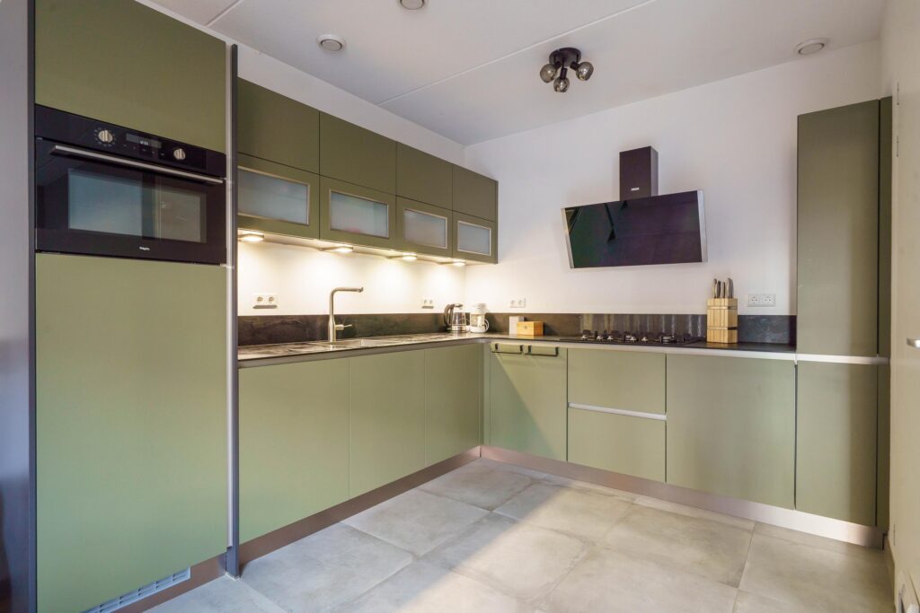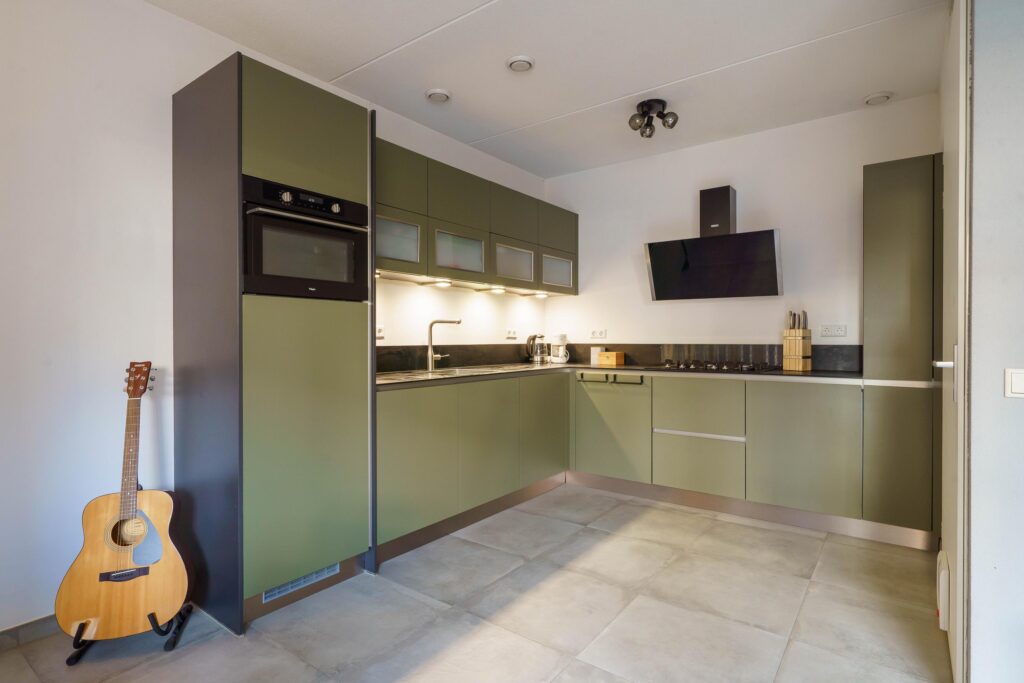 • Complete inbouwkeuken (2019) in L-opstelling met o.a. koelkast, vriezer, vaatwasser, combi-oven en 5-pits gaskookplaat