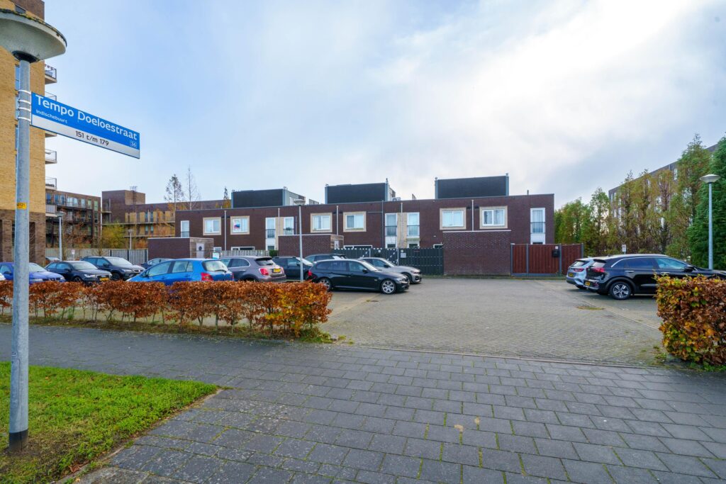 Aan de rand van het project bevindt zich het mandelige parkeerterrein met eigen parkeerplaats (VvE-bijdrage € 40,- p/m).