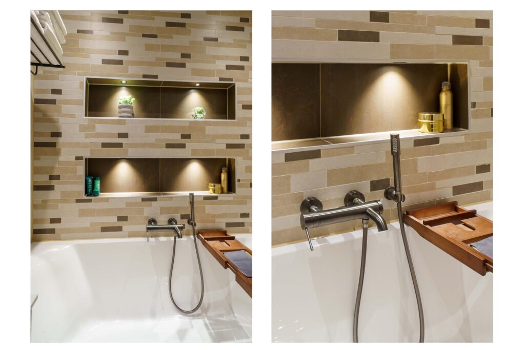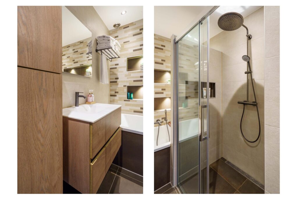 • Luxe en compleet uitgevoerde badkamer met ligbad, inloopdouche, wastafelmeubel, handdoekradiator en verlaagd plafond met spotjes