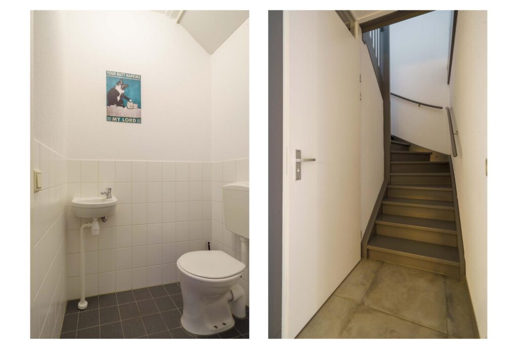 Via de tussenhal bereikt u het toilet en de trap naar de verdieping.