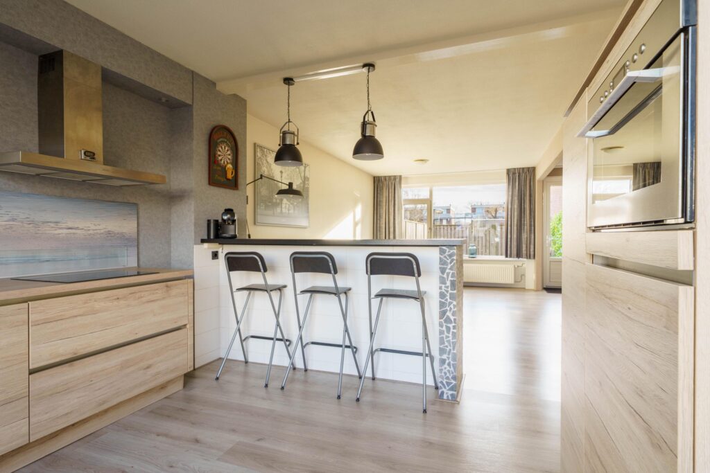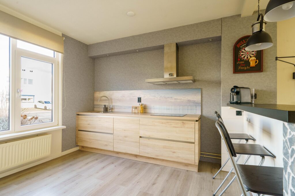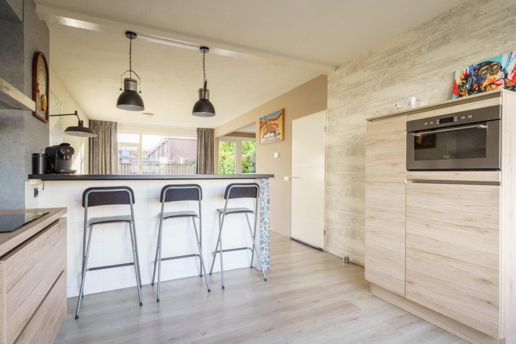 Via de entreehal bereikt u de meterkast, trapkast, het toilet, de wasmachine-/drogerkast én de ruime berging aan de voorzijde. De L-vormige woonkamer van maar liefst 6,10 meter breed biedt veel ruimte en lichtinval, met grote ramen en een deur naar de achtertuin op het zuid-oosten. De moderne inbouwkeuken aan de voorzijde (2023) is uitgevoerd in een recht deel en een apparatenwand en is voorzien van alle wenselijke apparatuur w.o. een inductiekookplaat, rvs afzuigkap, koelkast, vaatwasser, combimagnetron en veel opbergruimte. De gehele begane grond is voorzien van laminaatvloeren en strak afgewerkte wanden.