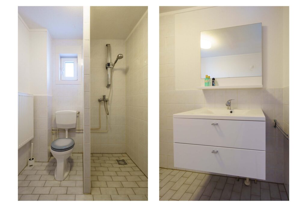 • Badkamer met inloopdouche, 2e toilet, wastafelmeubel en raam in de zijgevel
