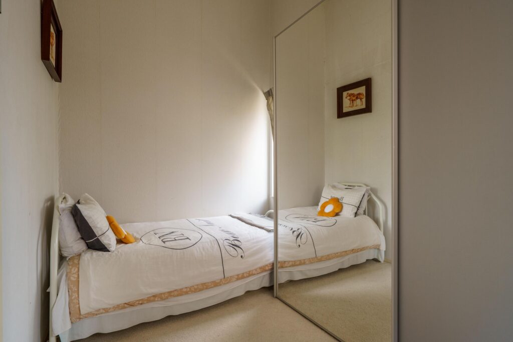 – Begane grond met slaapkamer én tuin-/werkkamer met dubbele openslaande deuren naar de tuin;