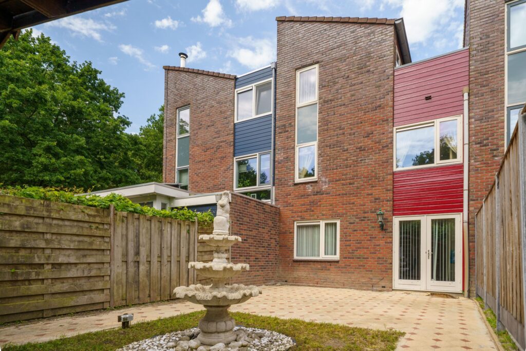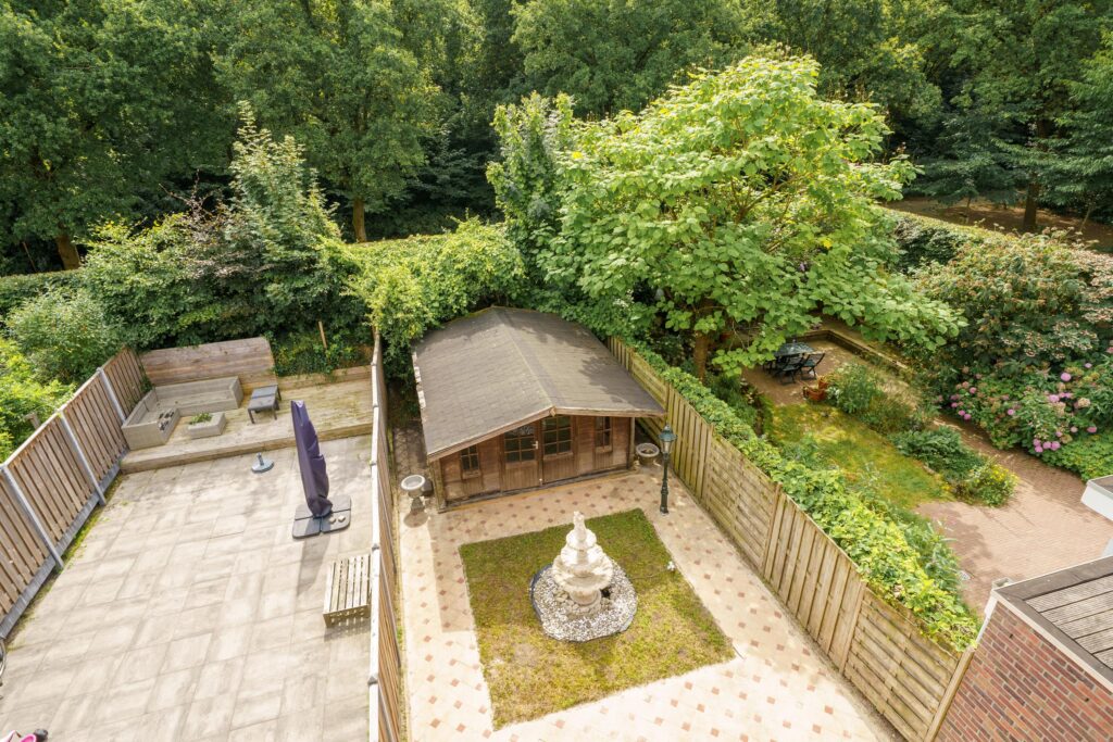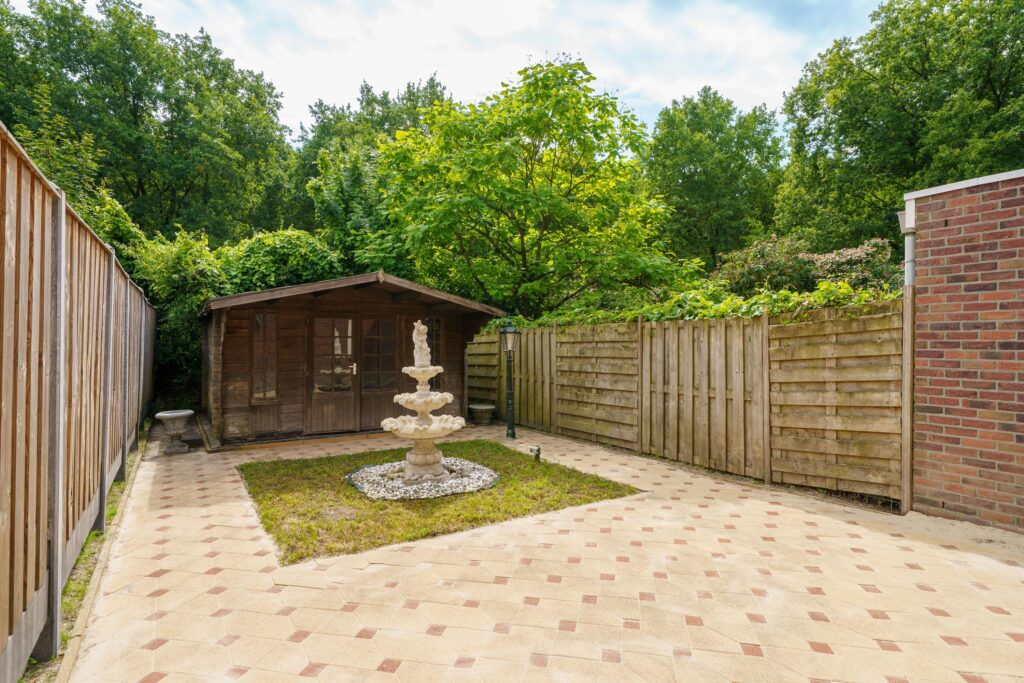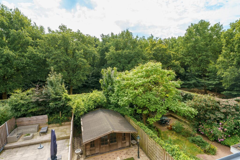 De ca. 13 meter diepe achtertuin is gelegen op het zuidoosten en aangelegd met een ruim tuinhuis/berging (15m2). Door de vrije ligging aan de achterzijde heeft u hier veel rust en privacy.