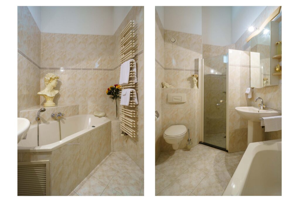 – Complete badkamer met douchehoek, ligbad/jacuzzi, wastafel en 2e toilet;